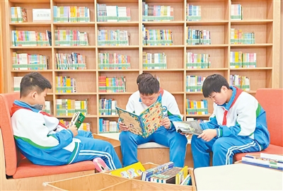 雄安新区北沙小学学生在图书馆内阅读。 |