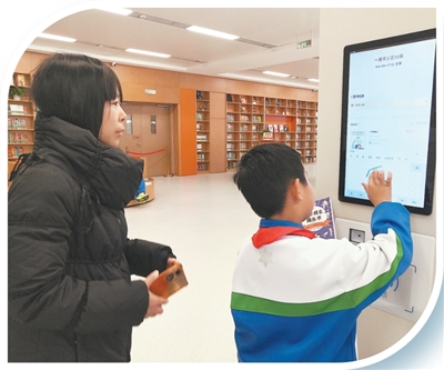 雄安图书馆内,小学生通过智能书柜检索图书。 |