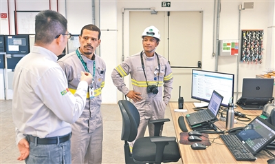 中巴两国员工就换流站的运营细节进行讨论。本报记者 时元皓摄