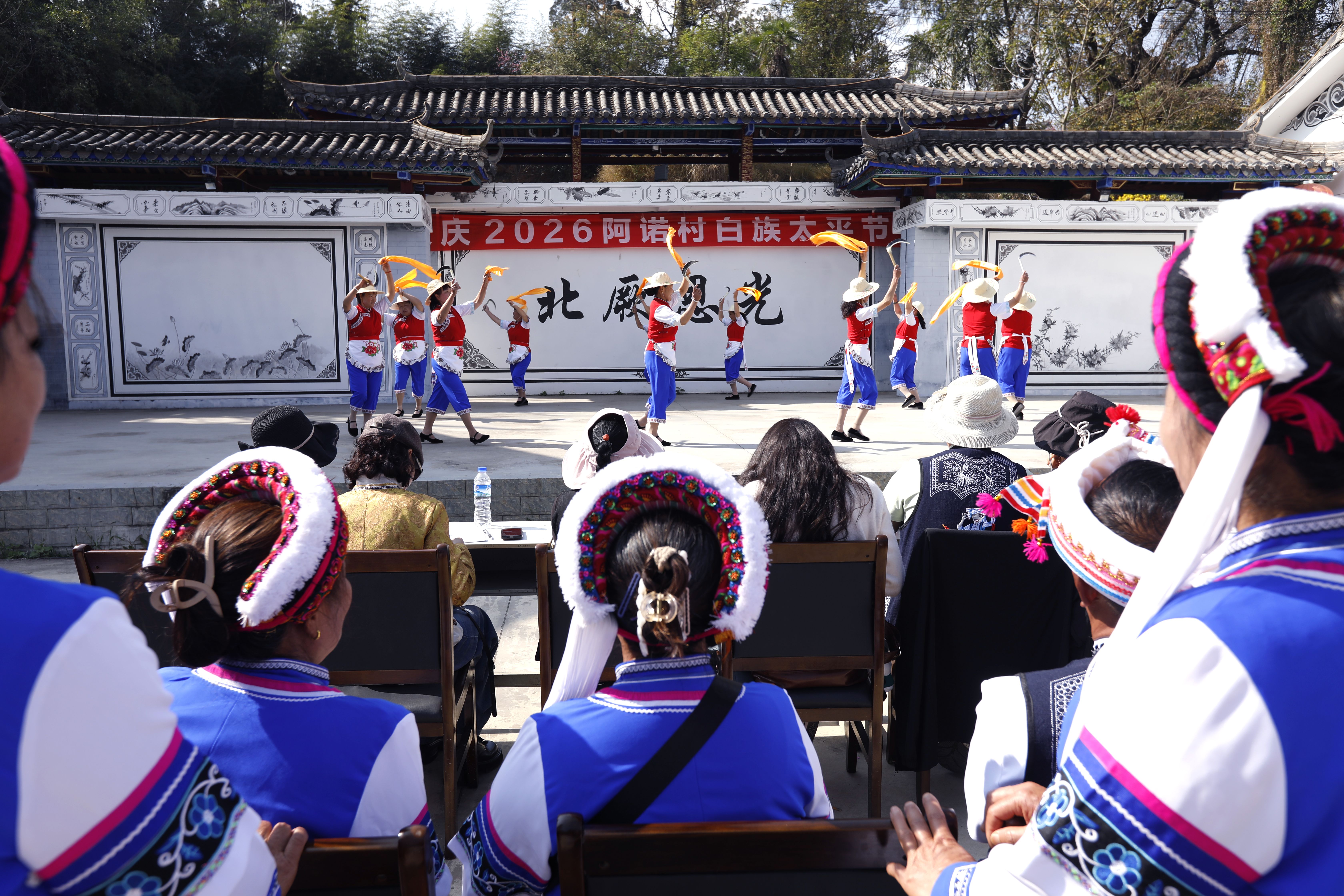 节日当天,阿诺村文化广场及主要活动场所人潮涌动,气氛庄重而热烈。白族群众聚集于古老龙树之下,举行系红带、许心愿等传统仪式。众人胸前或臂上皆佩戴鲜艳红花,以朴素而真挚的方式,表达对平安幸福生活的美好祈愿。