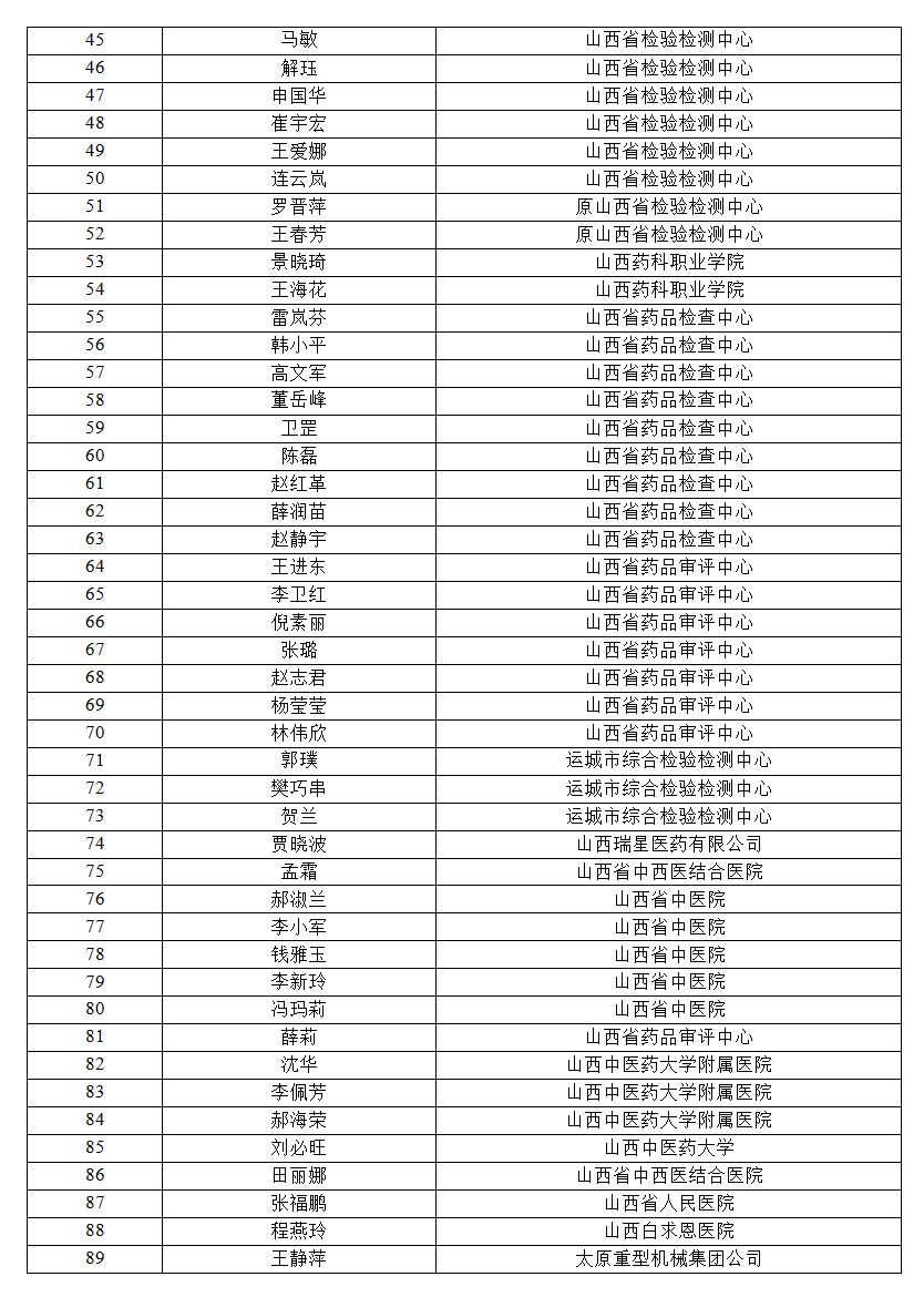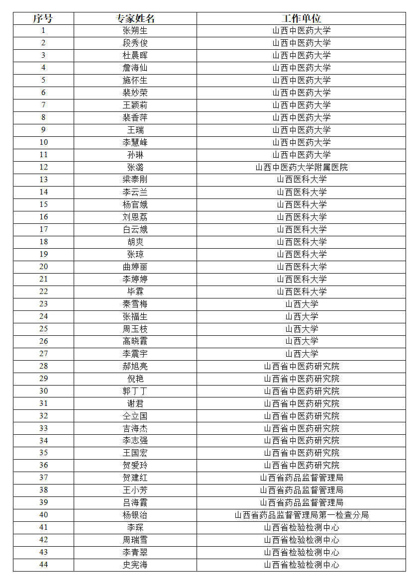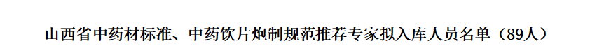 山西省中药材标准、中药饮片炮制规范评审专家库第一批拟入库名单公示