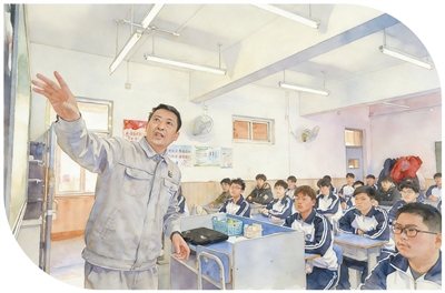 在天津市汉沽中专,全国人大代表、中石化第四建设有限公司工匠学院焊接教练张振连(左一)为学生们授课。 |