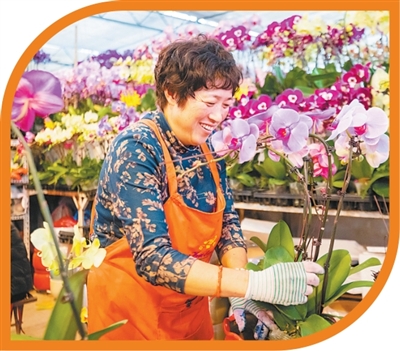 山东省青岛市枯桃花卉交易中心,花匠在整理鲜花。杨雪梅摄