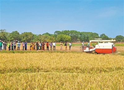 在冈比亚中河区,中国援冈比亚农业技术合作项目组面向当地农户开展水稻联合收割机技术示范教学活动。 |