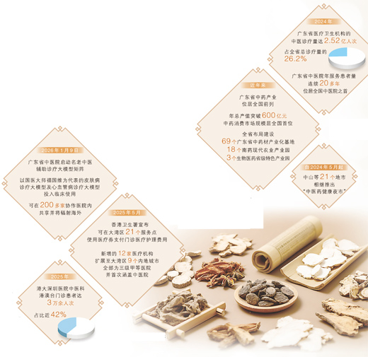近年来,广东省出台一系列促进中医药传承创新发展的重大举措,全面推进国家中医药综合改革示范区建设,打造粤港澳大湾区中医药高地,助力中医药扬帆出海,续写岐黄之术的新时代篇章。