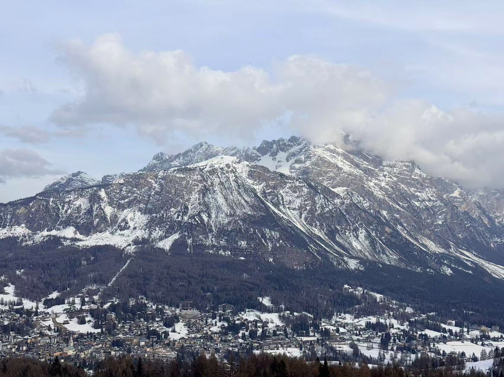 乘车前往科尔蒂纳丹佩佐(简称科尔蒂纳),沿着蜿蜒山路起起伏伏,一座冰雪小城跃入眼前。