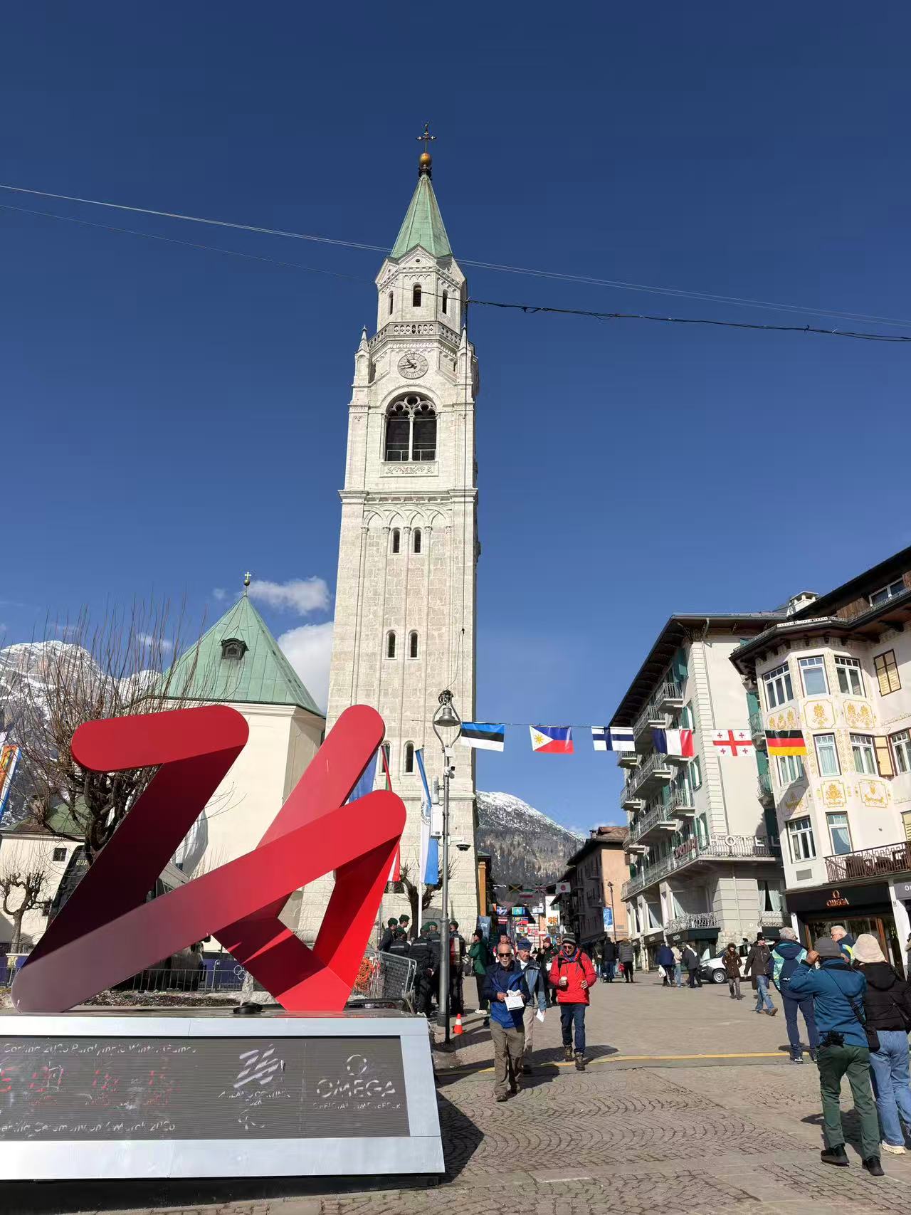 漫步至迪博纳广场,以数字“26”为主体的倒计时装置矗立在教堂前,街边房子上的蓝色旗帜写着“科尔蒂纳,1956、2026举办城市”。在这里,激昂的冬奥乐章刚刚完结,冬残奥画卷又将精彩起笔。