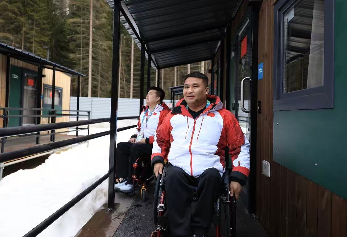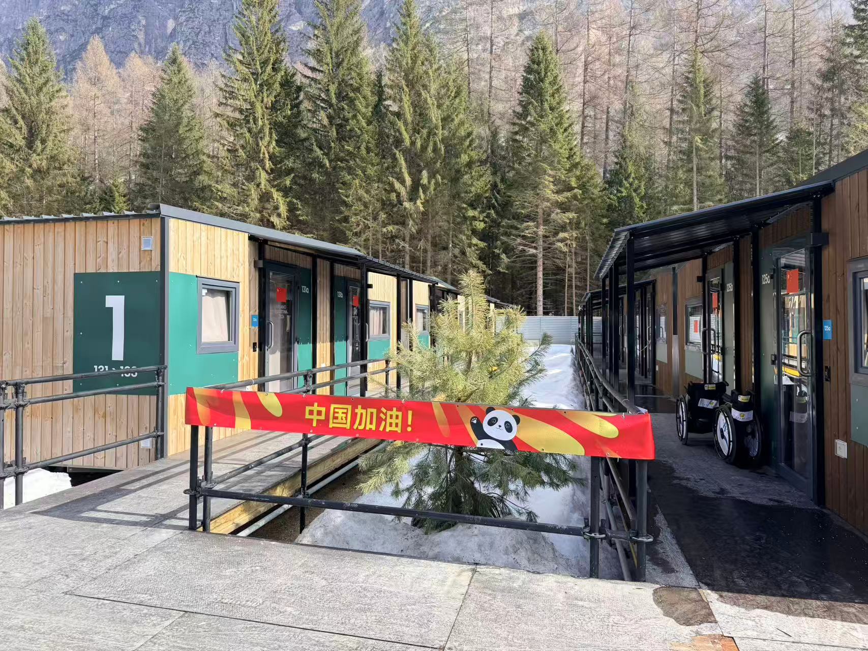 当地时间3月3日,距离米兰—科尔蒂纳冬残奥会开幕还有3天。持续的大雾散去,一缕阳光穿透云层,洒向雪山脚下的残奥村。穿梭于一排排小木屋,望见印着“中国加油”和招手熊猫的红色横幅,中国代表团的“家”到了。
