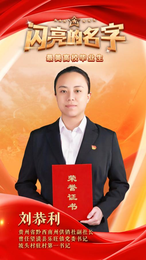 近日,中央宣传部、人力资源社会保障部联合向全社会公开发布全国“最美高校毕业生”名单。其中,贵州黔西南州的刘恭利荣获“最美高校毕业生”称号。