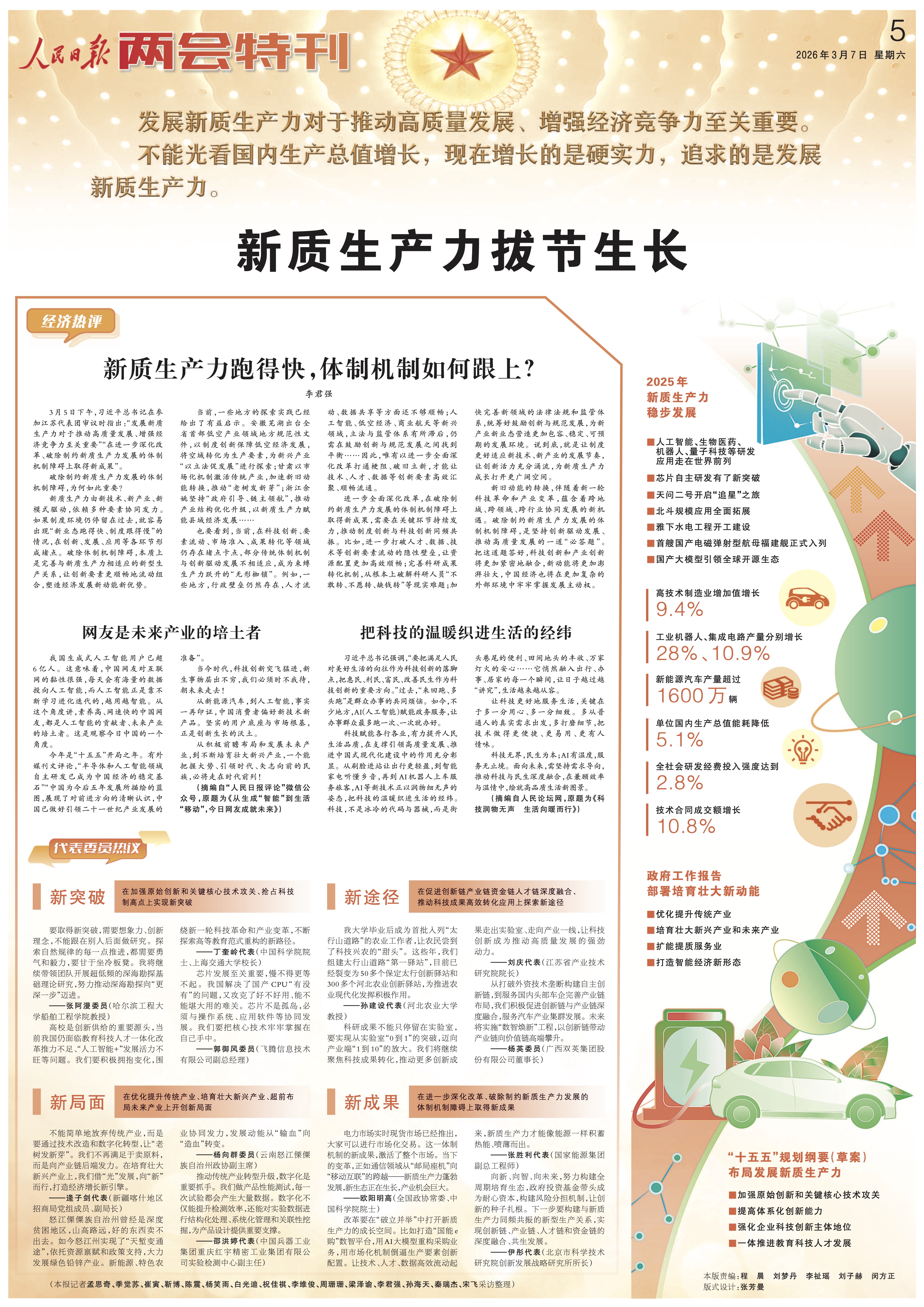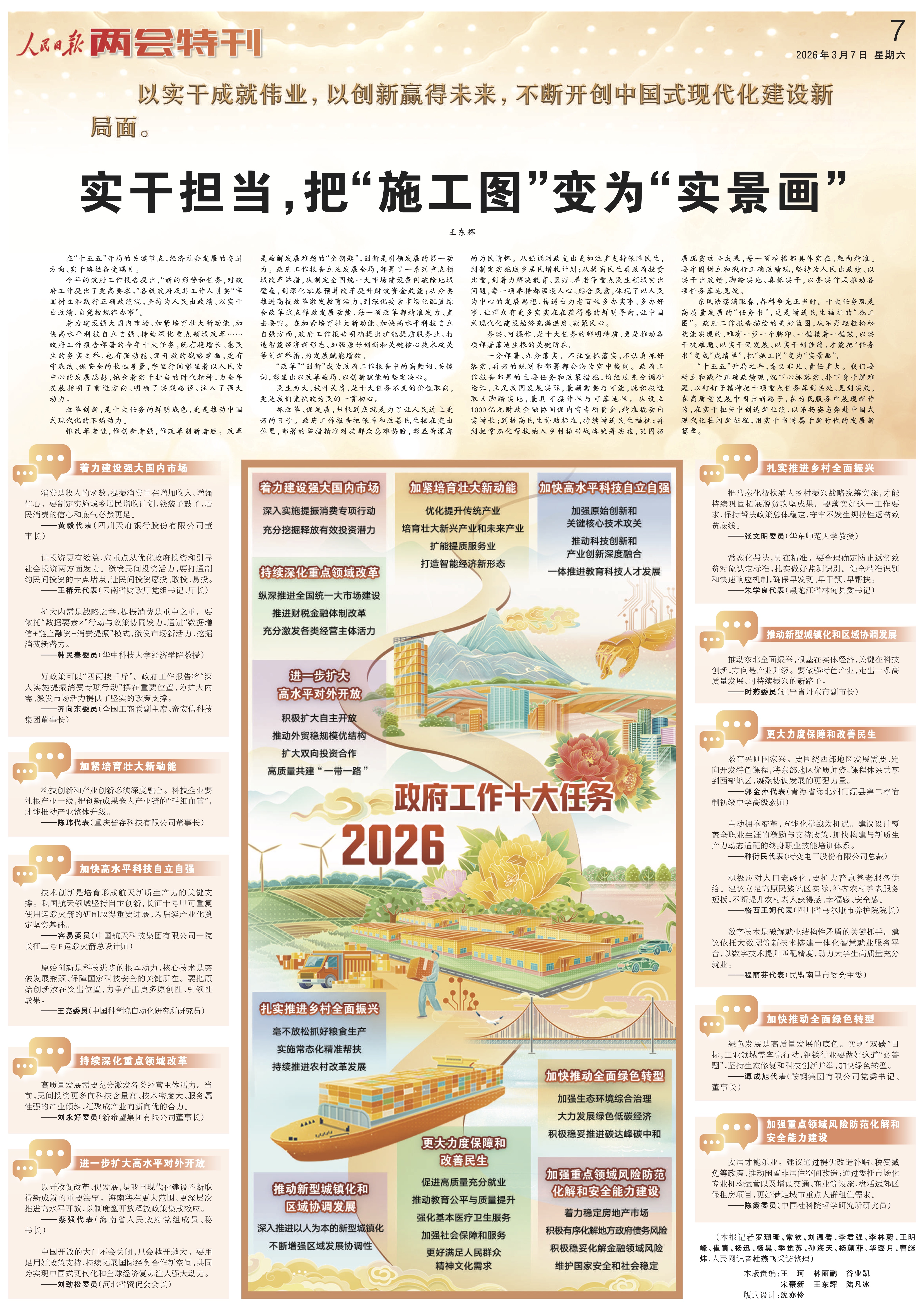 3月7日,人民日报两会特刊有哪些精彩内容?一起来看!