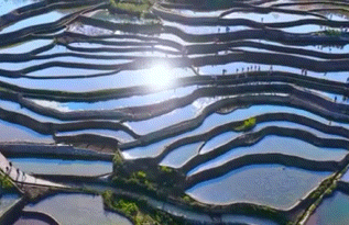 春日正好,位于云南省红河哈尼族彝族自治州元阳县的爱春蓝梯田迎来最佳观赏期。