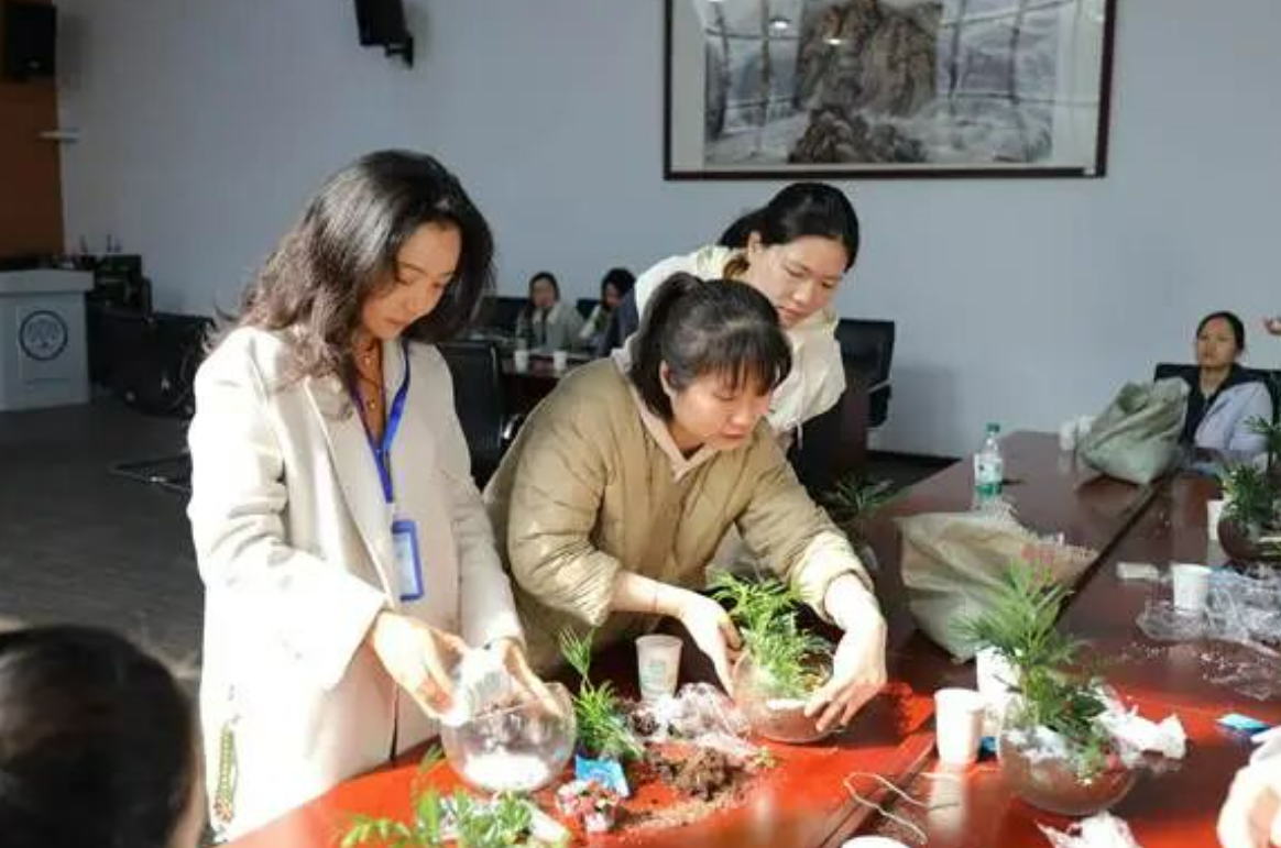 本次活动紧扣特警职业特色与女性审美需求,由学校市级首席插花花艺师工作室精心策划定制。活动以“理论讲解+实操体验”形式开展,导师团队现场示范多肉搭配、苔藓造景、摆件布局等技巧,巧妙融入坚韧、守护、希望等精神内涵,引导大家亲手打造专属“警营花园”。