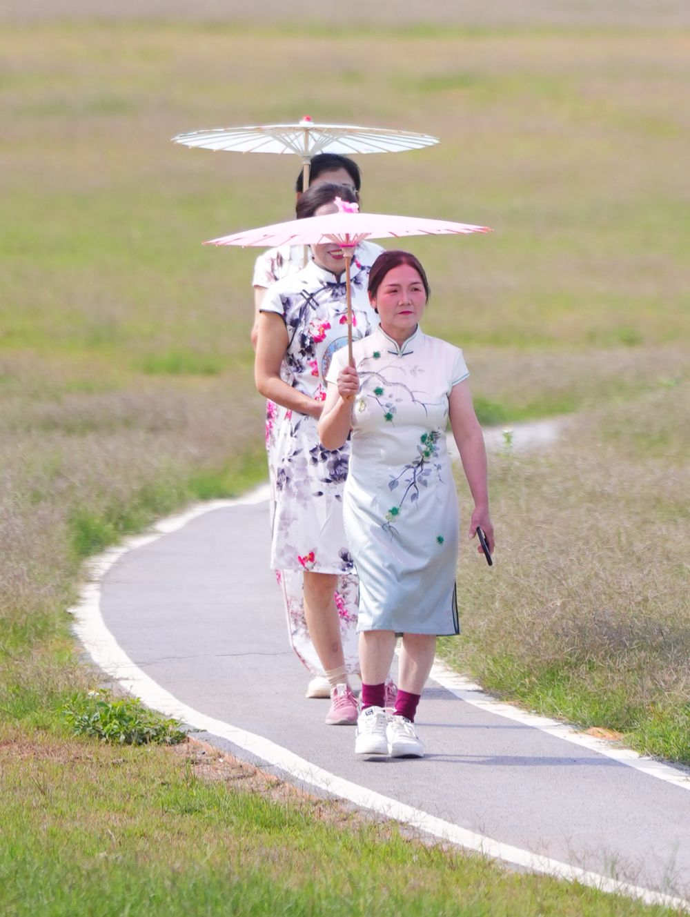 “哎呀,这真的是我吗?”来自四川达州的冯大姐对着相机显示屏,忍不住反复端详,脸上漾开灿烂的笑容,“从来没想过,我穿旗袍也能这么好看!”在摄影师的巧妙引导下,她们或执团扇,凭栏浅笑;或携手并肩,婷婷而立。清脆的快门声连连响起,将这份从心底绽放的自信与美丽,牢牢定格。