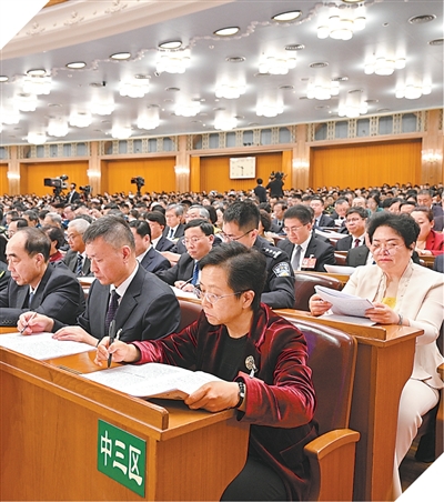 3月9日上午,十四届全国人大四次会议第二次全体会议在北京人民大会堂举行。
