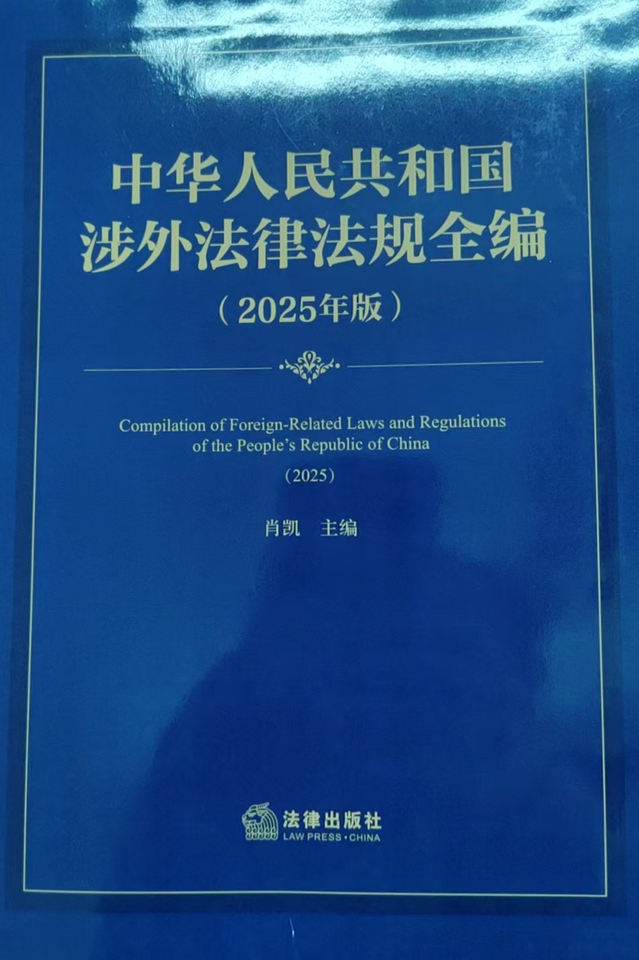 由华东政法大学校长肖凯主编、该校国际法学院院长杜涛副主编的《中华人民共和国涉外法律法规全编(2025年版)》,近日出版发行。