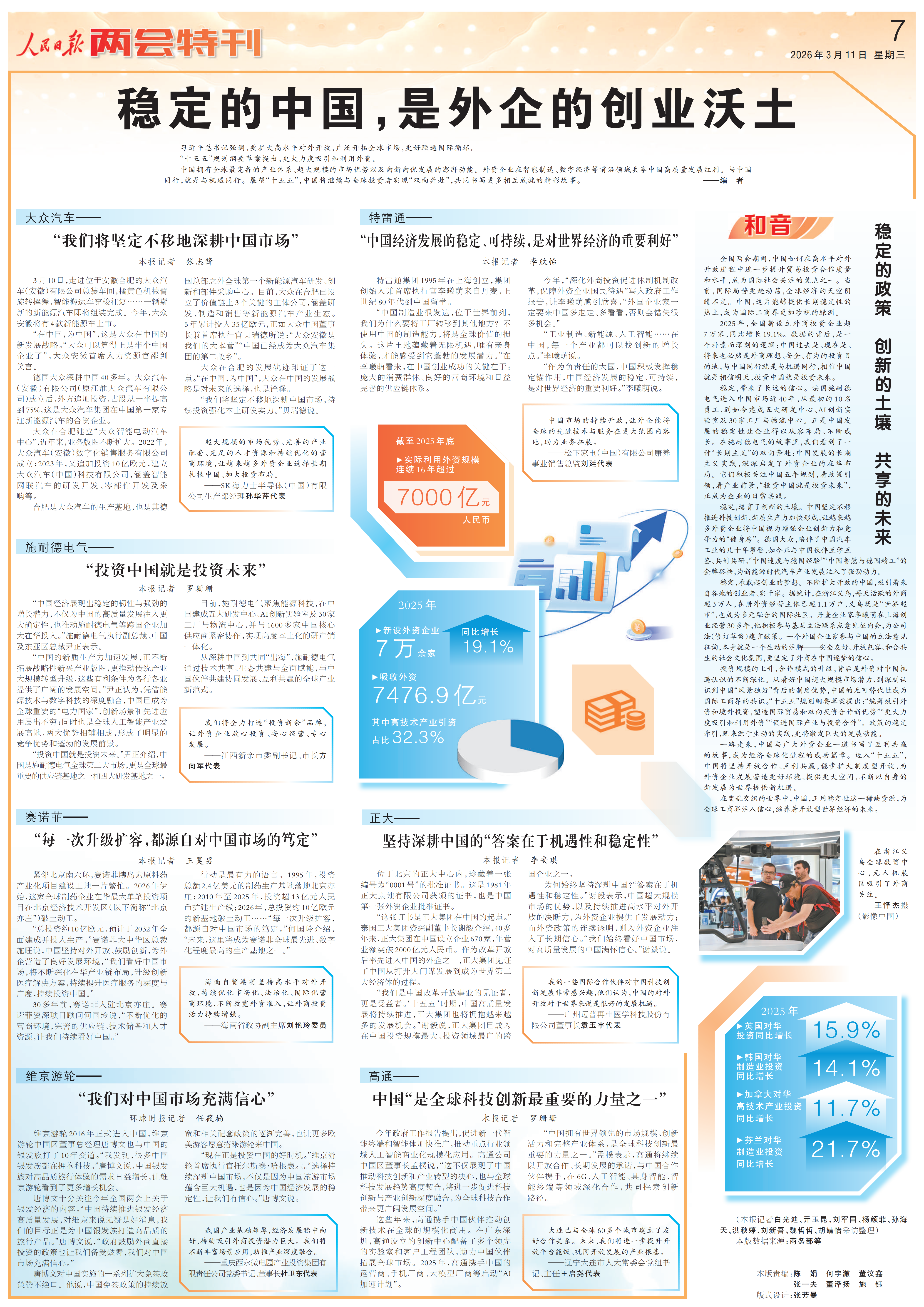 投资规模的上升,合作模式的升级,背后是外资对中国机遇认识的不断深化。从看好中国超大规模市场潜力,到深刻认识到中国“风景独好”背后的制度优势,中国的无可替代性成为国际工商界的共识。“十五五”规划纲要草案提出:“统筹吸引外资和境外投资,塑造国际贸易和双向投资合作新优势”“更大力度吸引和利用外资”“促进国际产业与投资合作”。政策的稳定牵引,既来源于生动的实践,更将激发巨大的发展动能。