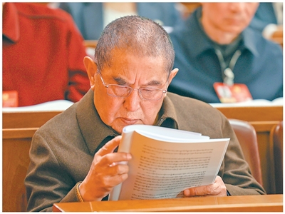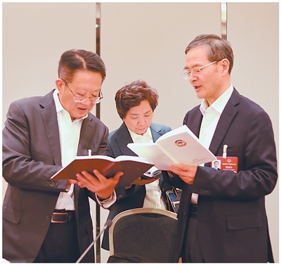 3月8日,全国政协十四届四次会议在人民大会堂举行第三次全体会议。图为委员在阅读会议材料。 |