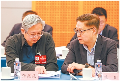 3月9日,对外友好界的委员在小组会议上交流讨论。 |