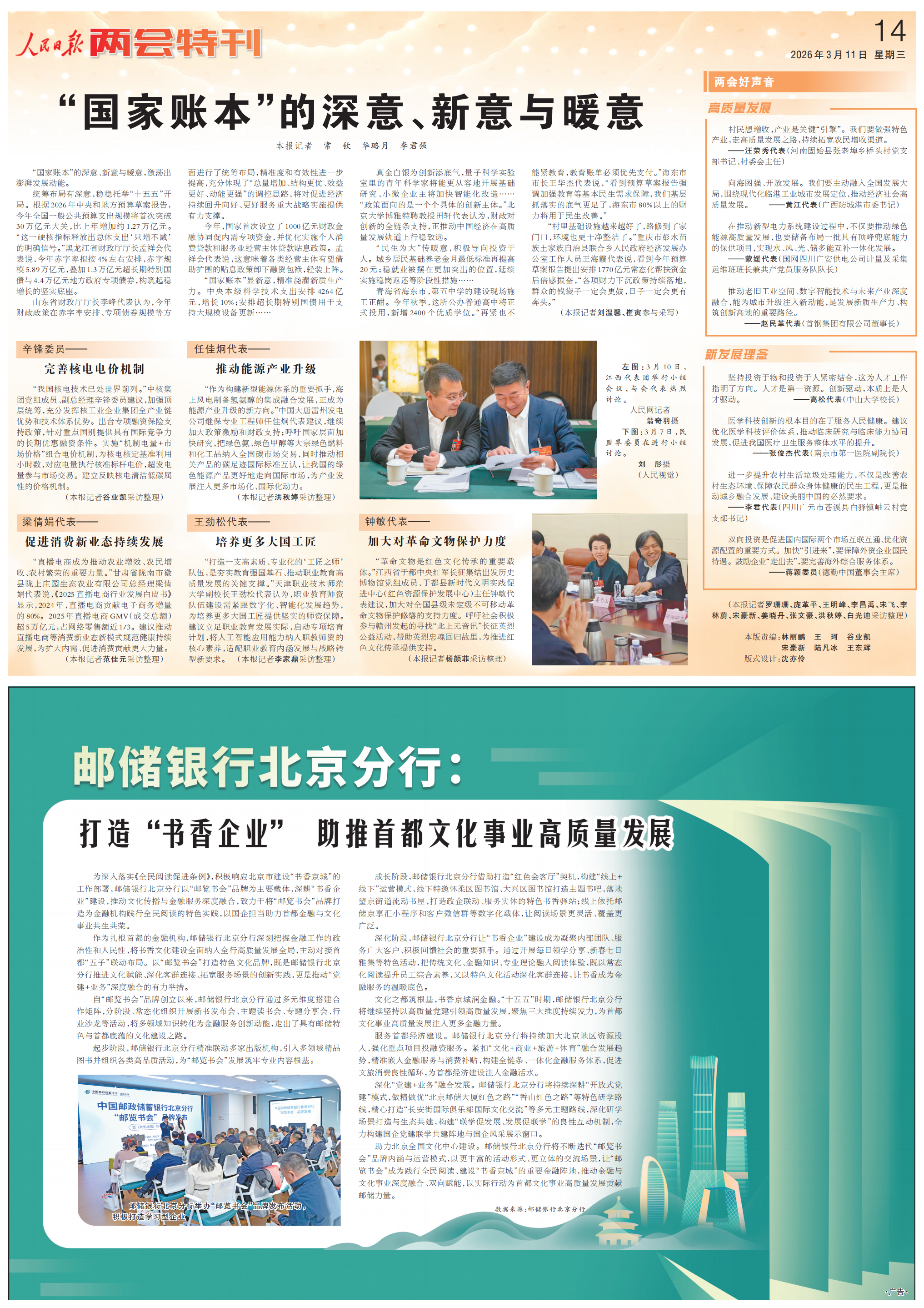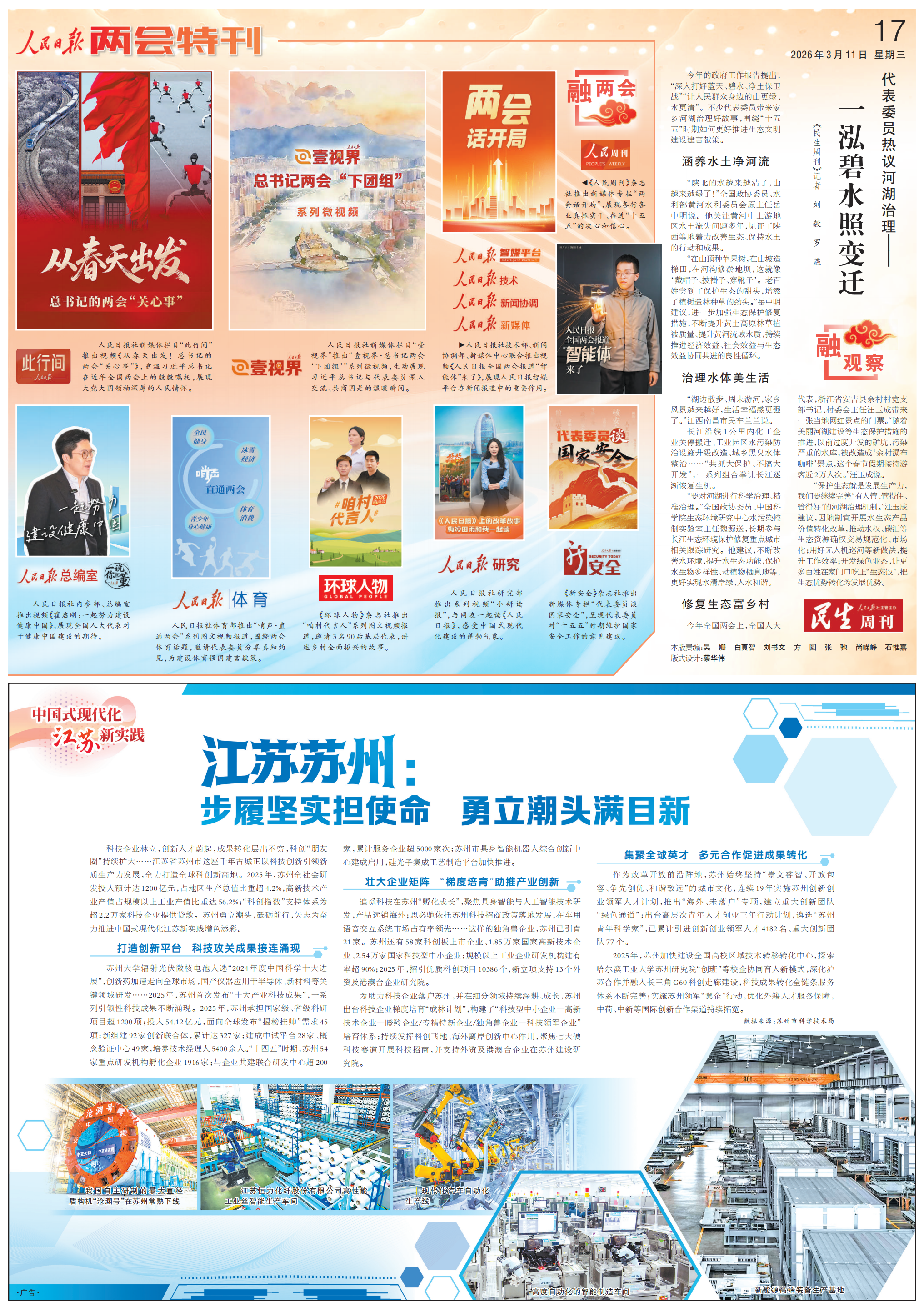 3月11日,人民日报两会特刊有哪些精彩内容?一起来看!