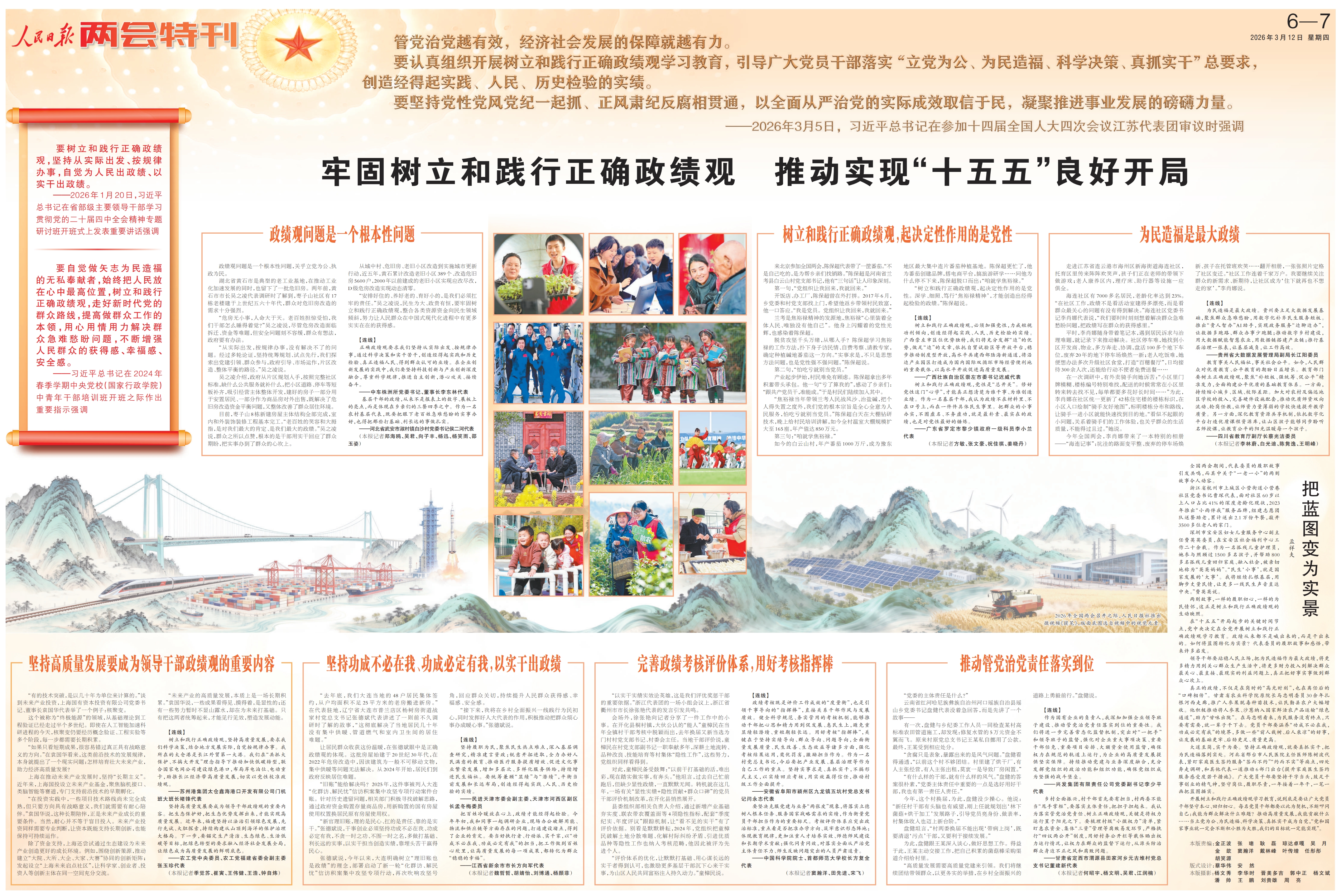 基层干部的政绩,从来不是报表上的数字、展板上的亮点,而是体现在乡亲们的三餐四季之中。作为一名农村基层代表,既要把眼下老百姓急难愁盼的实事办好,也得把那些打基础、利长远的事做扎实。