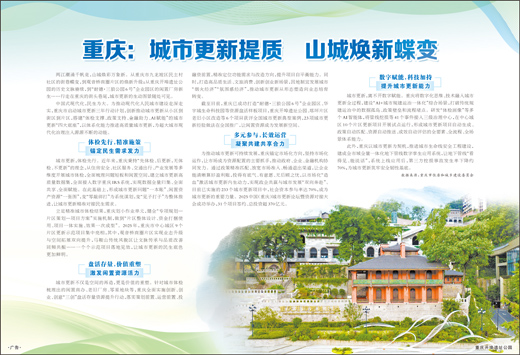 立足精准城市体检结果,重庆划小作业单元,健全“专项规划—片区策划—项目方案”实施机制,做到“片区整体设计、资金打捆使用、项目一体实施、效果一次成型”。2025年,重庆市中心城区9个片区更新示范项目集中亮相,其中,观音桥商圈片区实现业态升级与空间拓展双向提升,马鞍山传统风貌区让文脉传承与品质改善同频共振……一个个示范项目落地见效,让城市更新的民生底色更加鲜明。