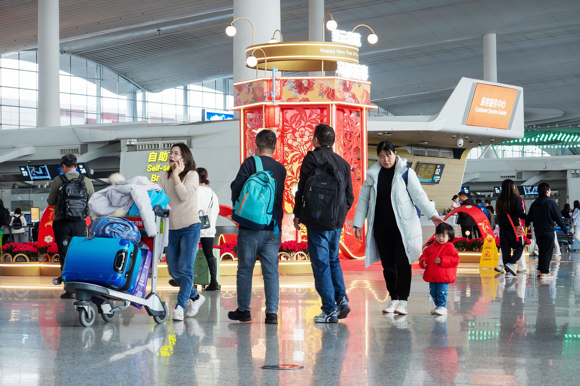 春运期间,白云机场以“春风服务”为底色,推出系列服务举措,举办系列文化活动,为旅客提供舒适、温馨的出行氛围,让每一段归途都充满温情。
