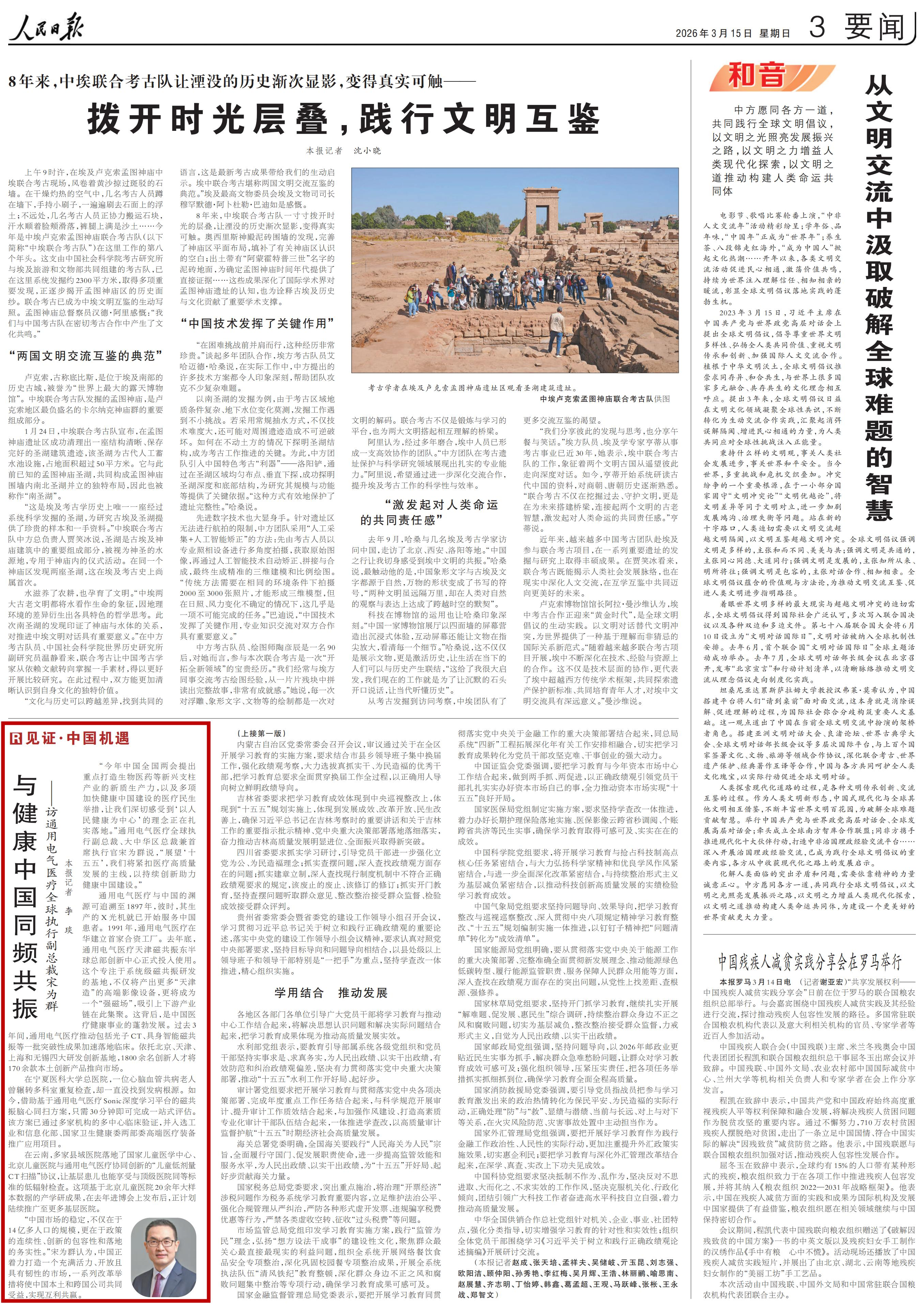 “今年中国全国两会提出重点打造生物医药等新兴支柱产业的新质生产力,以及多项加快健康中国建设的医疗民生举措,让我们深切感受到‘以人民健康为中心’的理念正在扎实落地。”通用电气医疗全球执行副总裁、大中华区总裁兼首席执行官宋为群说,“展望‘十五五’,我们将紧扣医疗高质量发展的主线,以持续创新助力健康中国建设。”