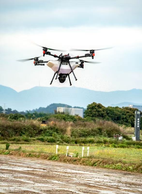 农场上空工作中的无人机。曾俊荣摄