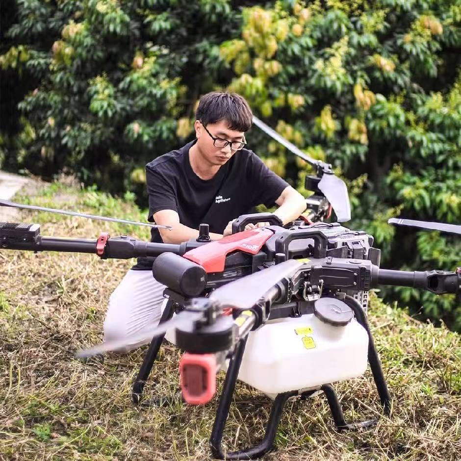 图为刘广镇在检查无人机设备。受访者供图