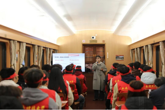 此次开行的红色研学专列,打破传统客运服务与思政教育的固有边界,深度融合红色基因传承与铁路运输服务优势,通过空间布局重构、教育内容创新、出行服务升级,搭建“观、听、学、悟”四位一体的沉浸式育人场景,实现交通载体与思政教育的有机衔接、深度融合,让理论学习转化为生动的实景感悟,引导青年学子追寻革命先辈光辉足迹,坚定理想信念、汲取奋进力量。