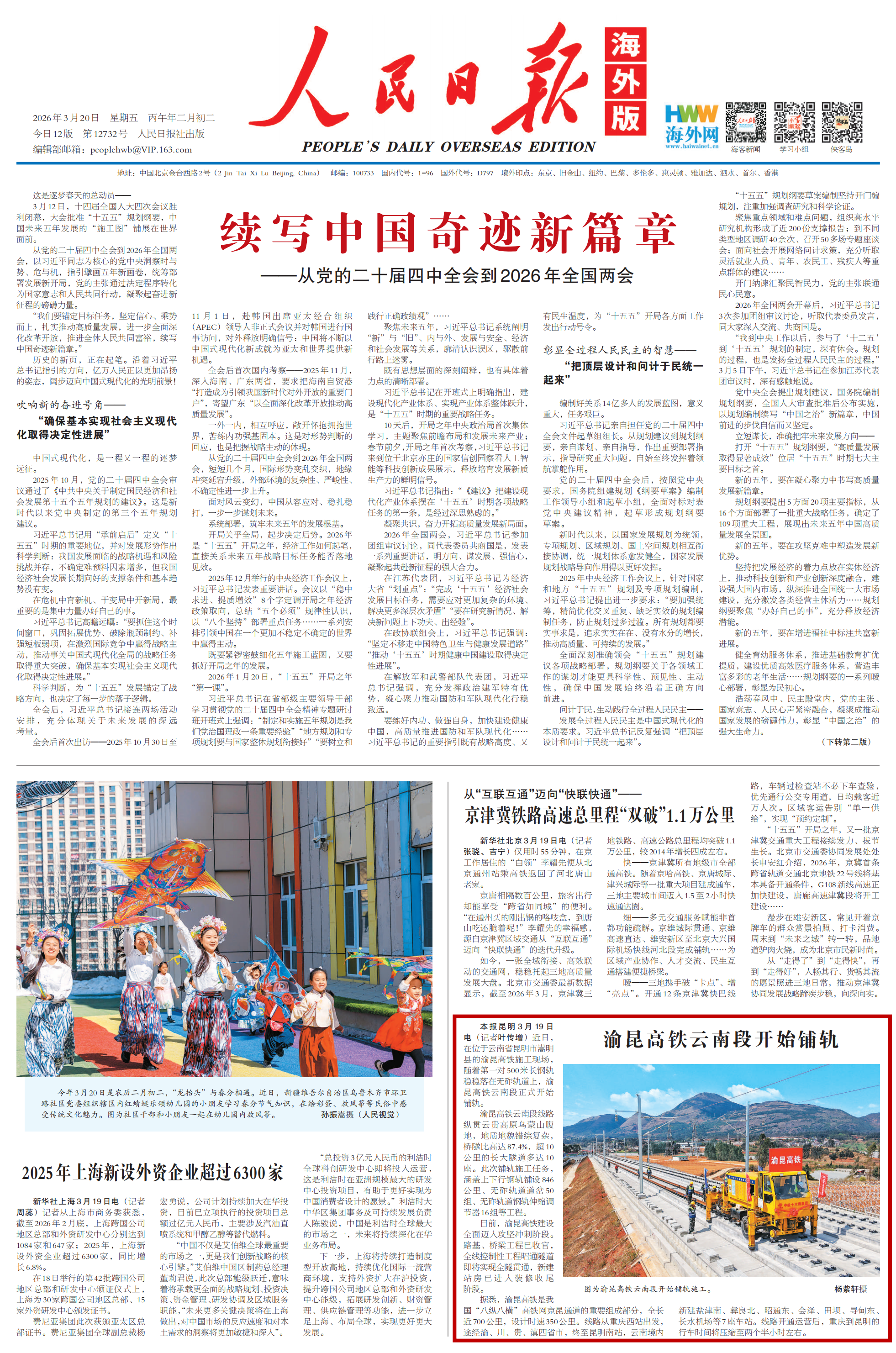 人民日报海外版头版关注渝昆高铁云南段开始铺轨