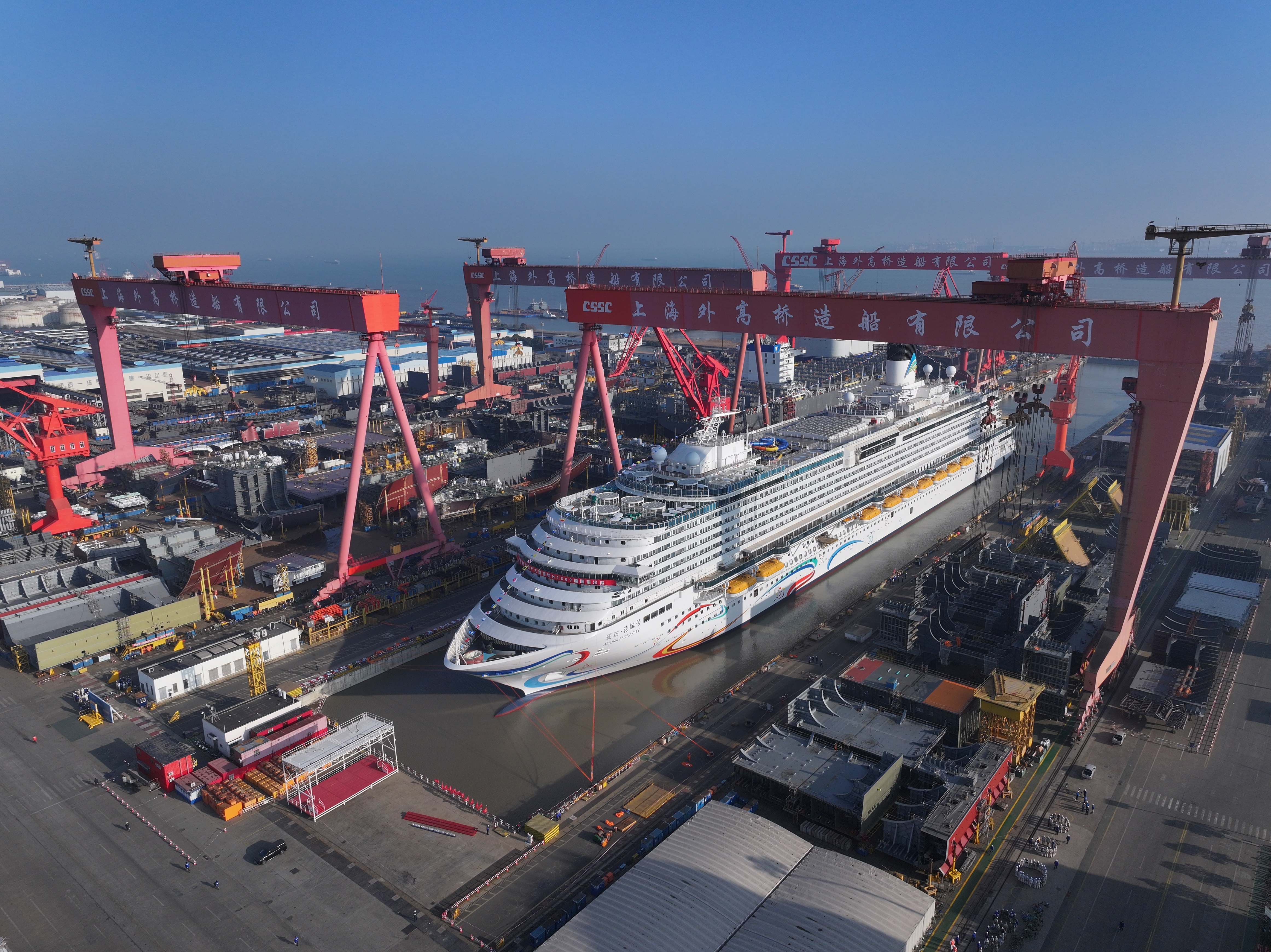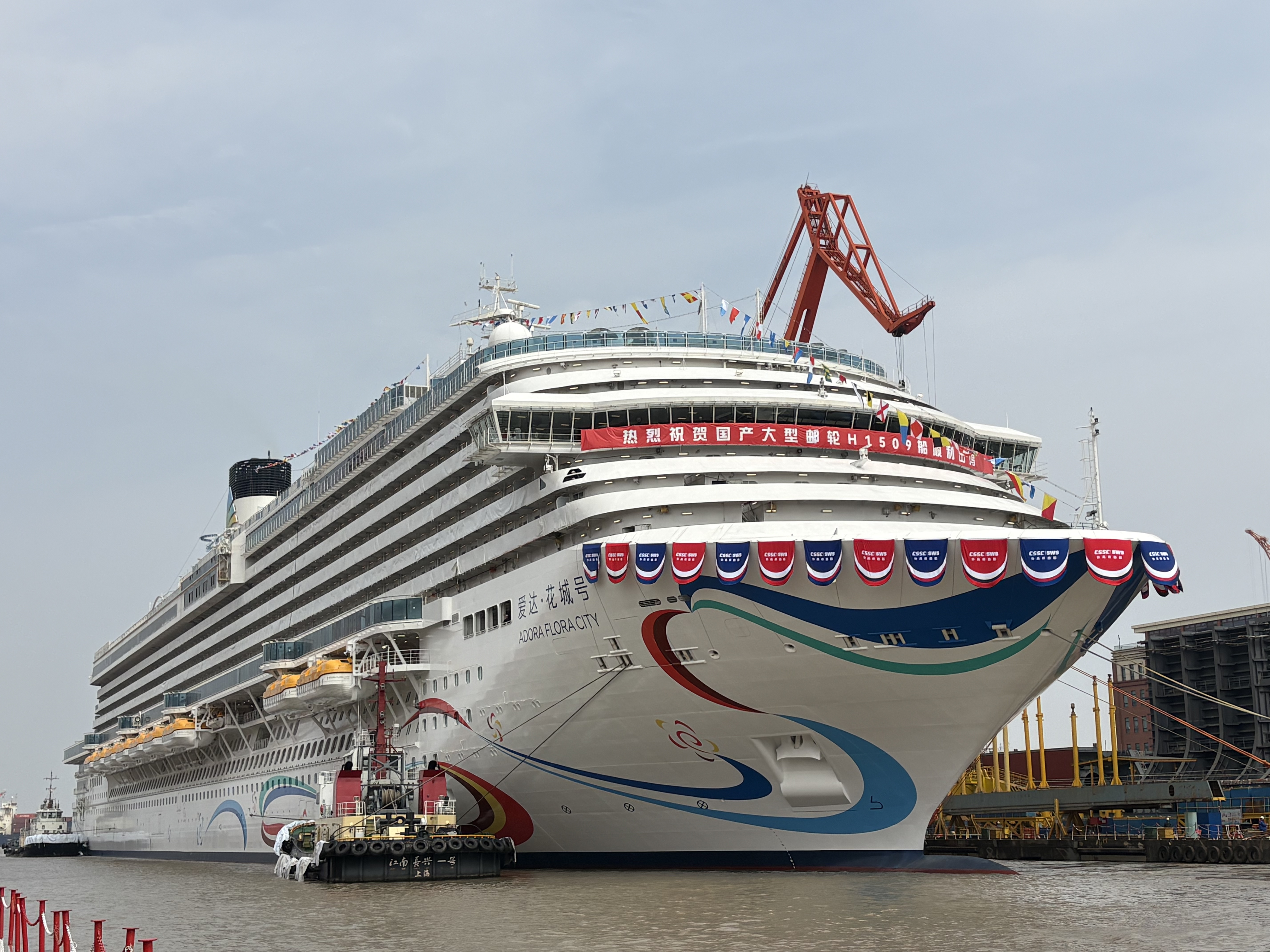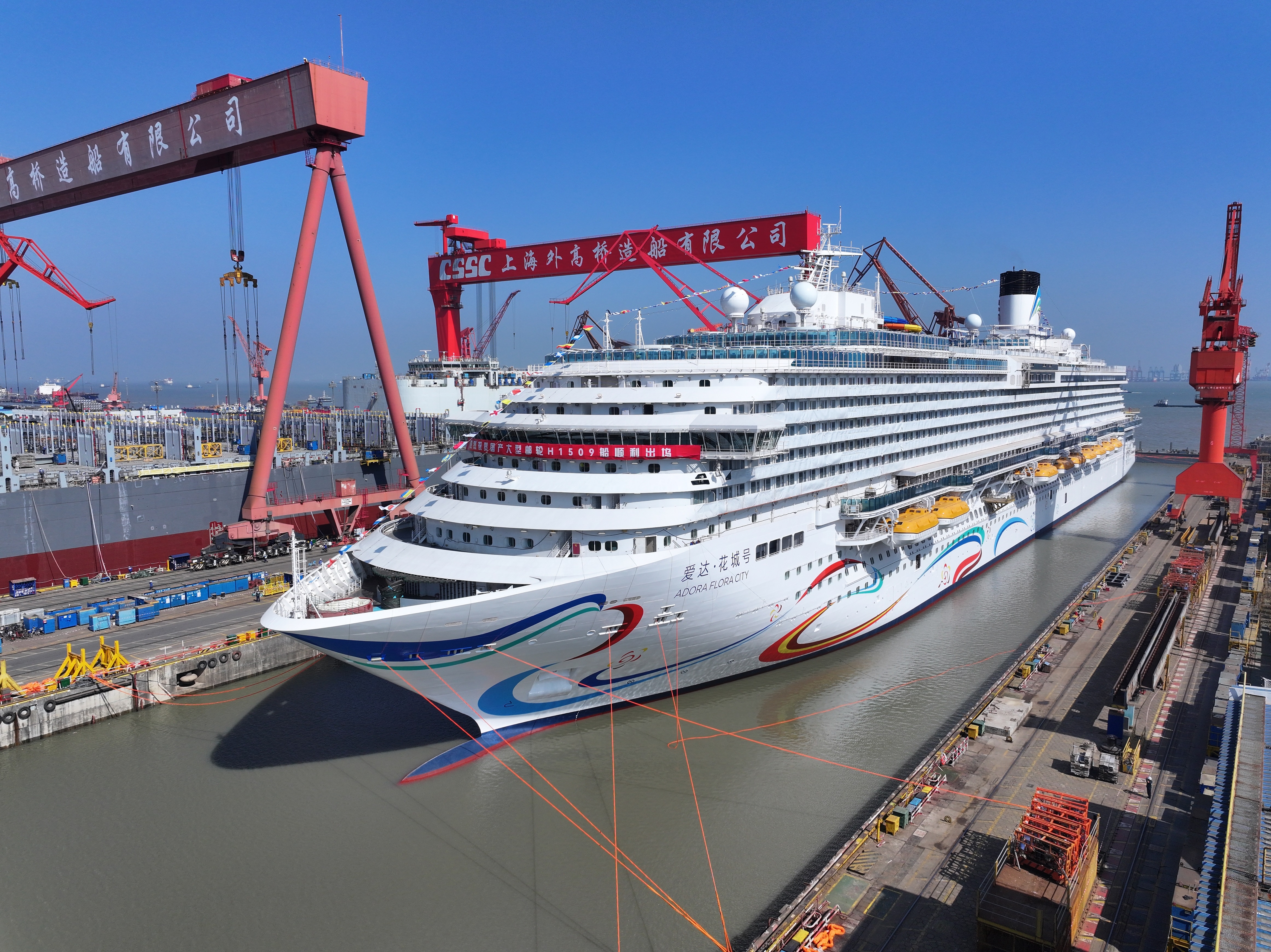 爱达·花城号的出坞是中国邮轮产业高质量发展的重要里程碑。作为中国旅游集团华夏邮轮所属爱达邮轮旗下邮轮,该船建造实现多项技术优化,国产化配套率较首艘国产邮轮提升5%,施工周期缩短,建造效率显著提升。后续将加速推进内装和系统调试,5月底开展试航,全力冲刺年底交付目标。