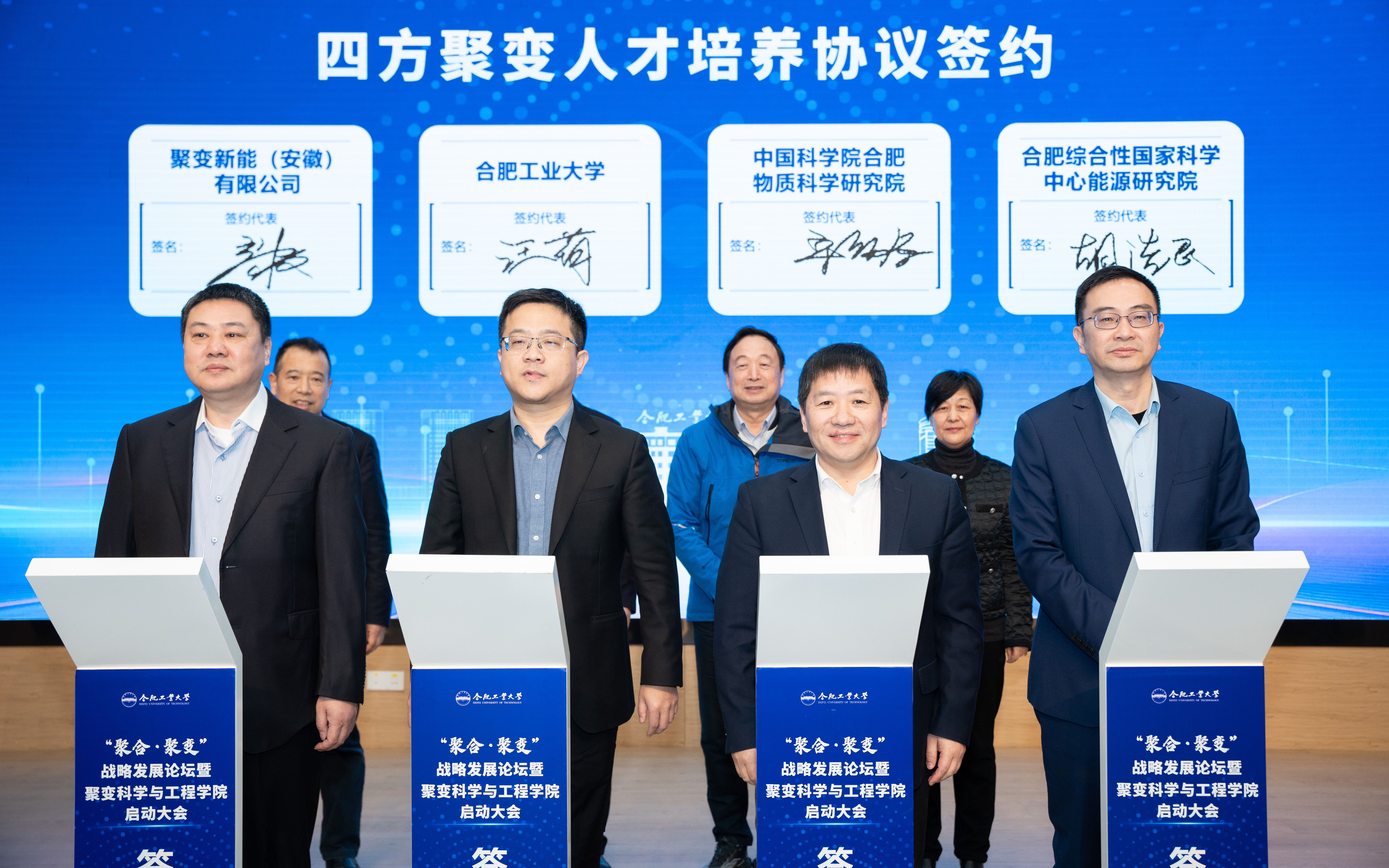 会上,揭牌成立了合工大聚变科学与工程学院,举行学院第一届战略咨询委员会聘任仪式。合肥工业大学与合肥综合性国家科学中心能源研究院等科研院所和领军企业共同签署四方聚变人才培养协议,与长丰县人民政府签署合作协议。聚变科学与工程学院与东昇聚变等六家聚变领域企业进行合作签约。会上还对新成立学院与聚变行业知名企业共建的6家联合实验室进行了揭牌。