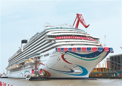 从“造出一艘船”到“构建一套体系”,两艘国产邮轮接续发力,释放强大产业集群效应。大型邮轮产业链带动比达1∶14,辐射船舶制造、母港运营、商贸文旅、金融服务等数千家上下游企业,推动邮轮大宗材料全面国产化,阳台、敷料、升降娱乐系统等部件实现国产替代,产业链自主可控能力持续增强。