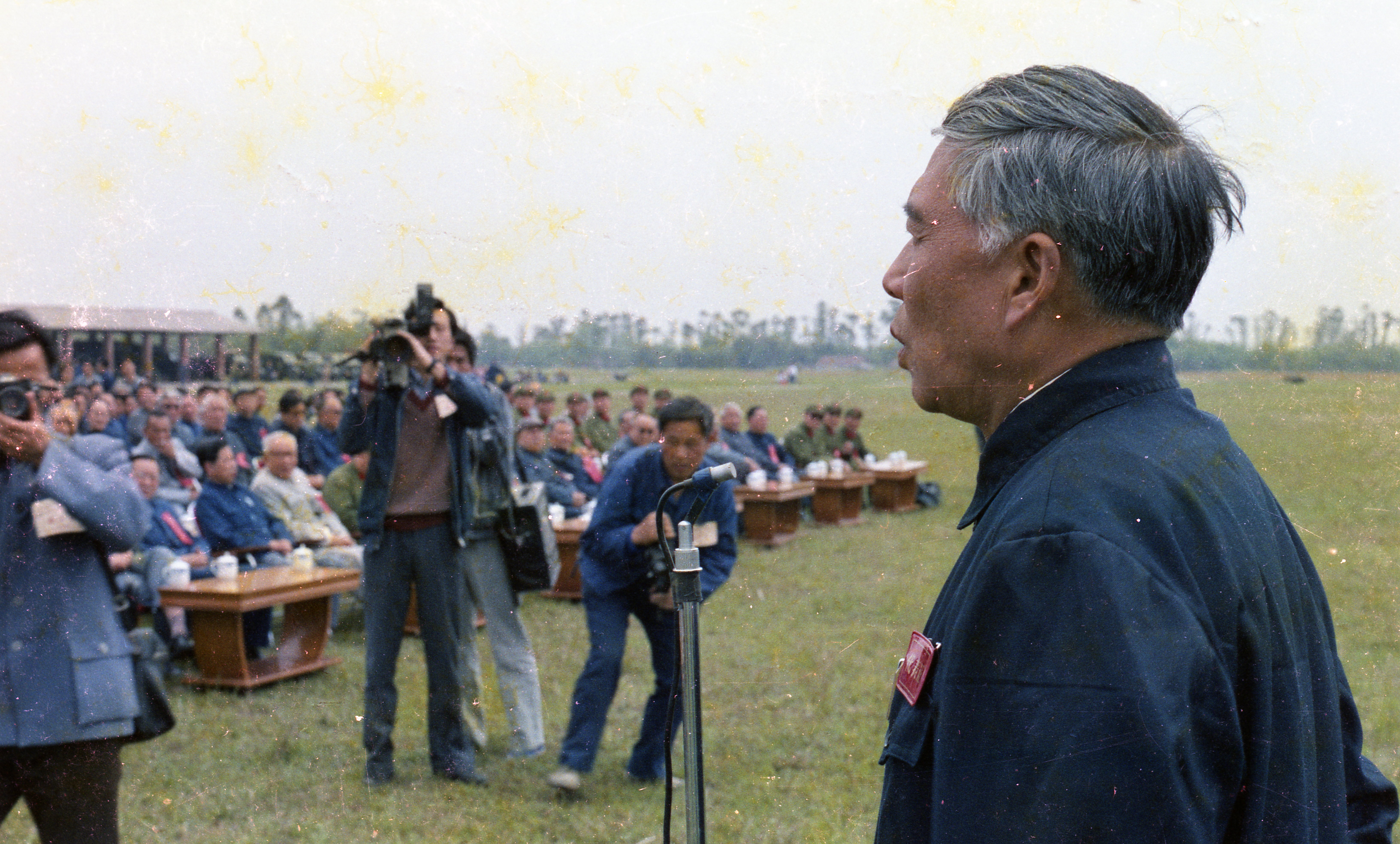 1984年5月6日,宋文骢在庆祝歼7Ⅲ飞机首飞成功仪式上讲话