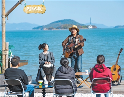 “民谣咖啡”店里,90后店主马真抱着吉他,弹唱原创歌曲,客人在音乐声中惬意地品味咖啡;不远处的“半岛拾贝”渔文化体验店里,店主尤婷婷带着游客制作鱼灯,欢声笑语间,一件件作品雏形显现。