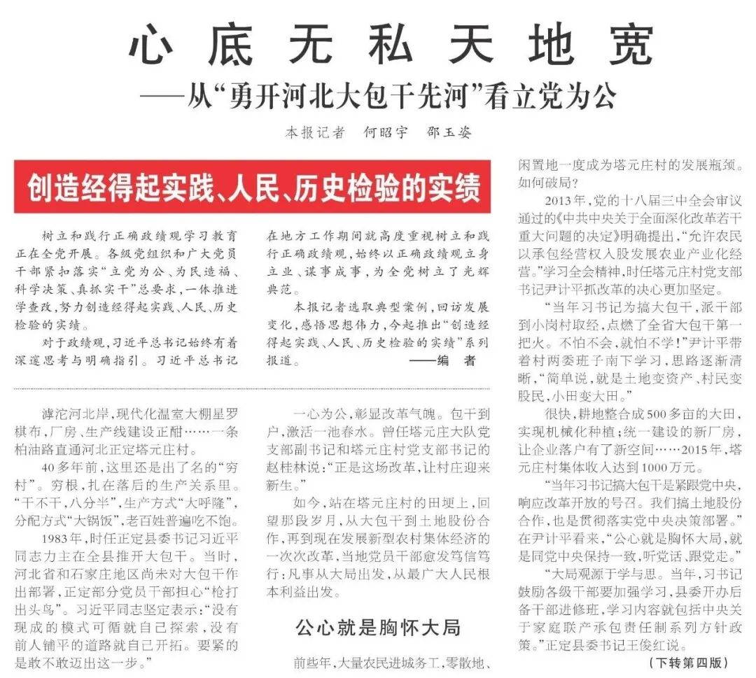3月19日至22日,人民日报头版推出“创造经得起实践、人民、历史检验的实绩”系列报道,选取典型案例,回访发展变化,感悟思想伟力。