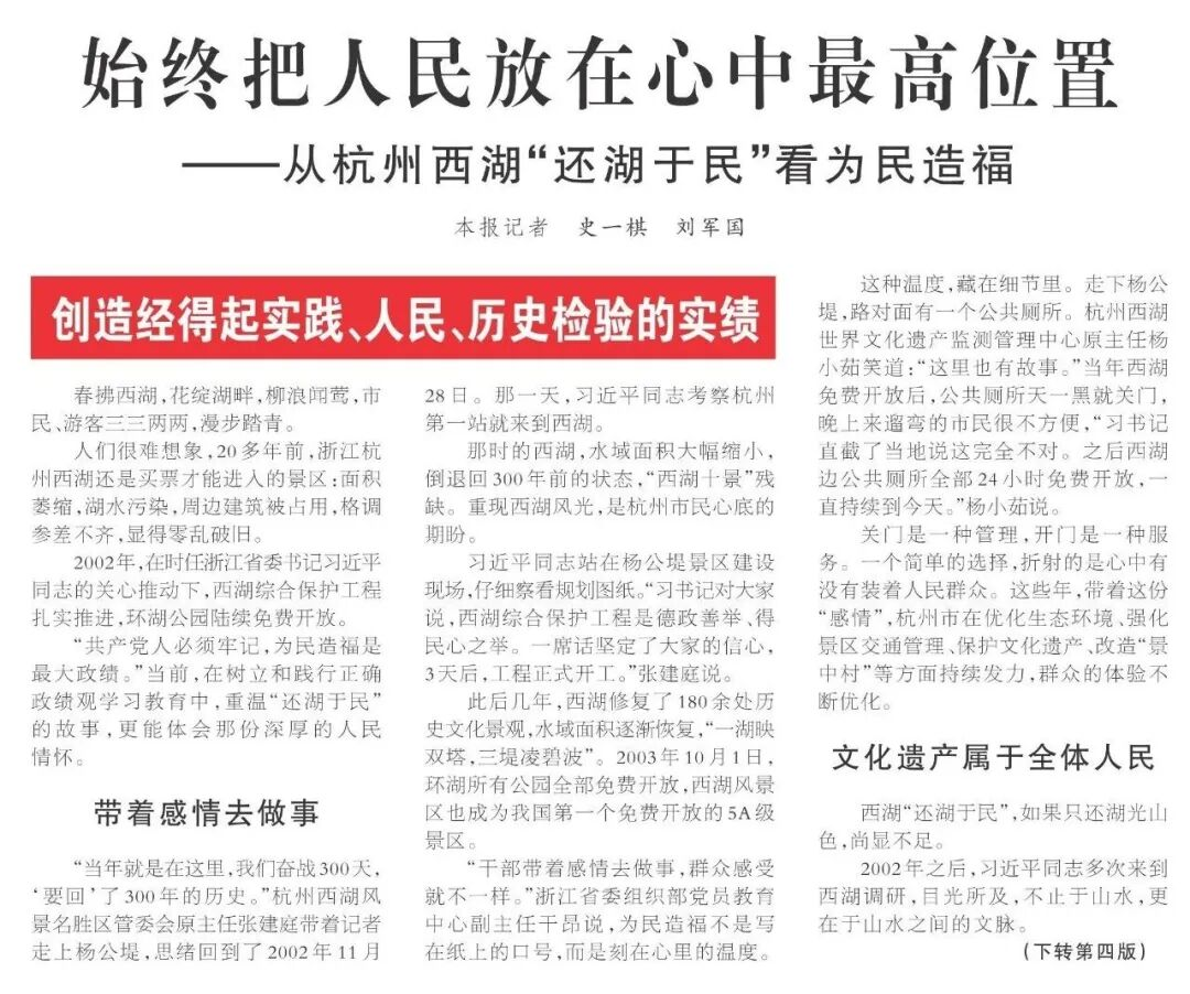 ——从杭州西湖“还湖于民”看为民造福