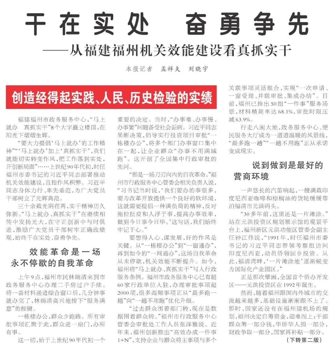 ——从福建福州机关效能建设看真抓实干