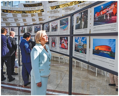 当地时间2025年8月15日,在白俄罗斯首都明斯克,观众参观纪念中国人民抗日战争暨世界反法西斯战争胜利80周年图片展。 |