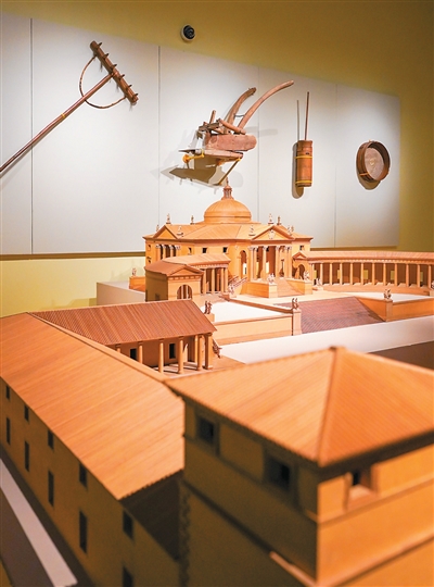 展厅里,一件件精致的建筑模型直观展现了帕拉第奥的设计巧思。意大利巴萨诺镇的木桥由帕拉第奥在1569年设计,桥面有带顶的长廊,桥墩为狭长的薄刃状,巧妙减少了浮木的冲击力。