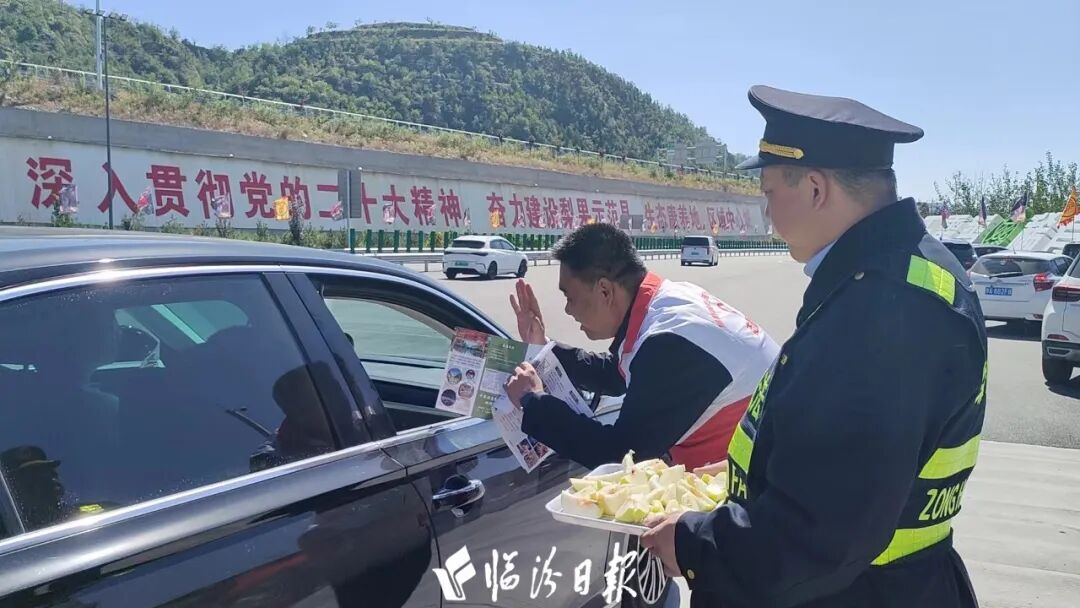 此前《黑神话:悟空》爆火,其取景地山西隰县也随之被全网熟知,全国各地的游客来到这里。为迎接远道而来的客人,隰县北高速路口,交警们贴心为游客送上切块的玉露香梨,供游客免费品尝。