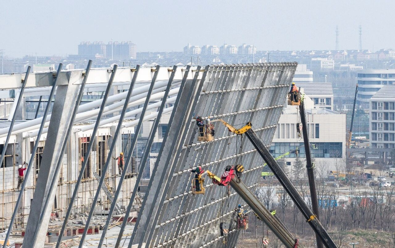 位于江苏省宿迁市湖滨新区的宿迁学院新校区建设工地,工人们正在紧张施工。陆启辉 摄
