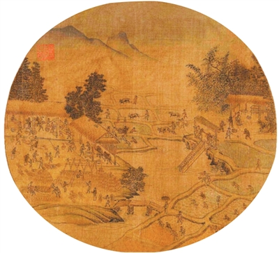 宋代《耕获图》中的脚踏翻车。资料图片