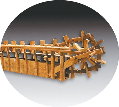 走进中国农业博物馆,一架长约3米的龙骨水车展品引人注目。水车主体为木结构,由摇柄、木链、刮板和水槽等部分组成,远看像一艘镂空的龙舟。