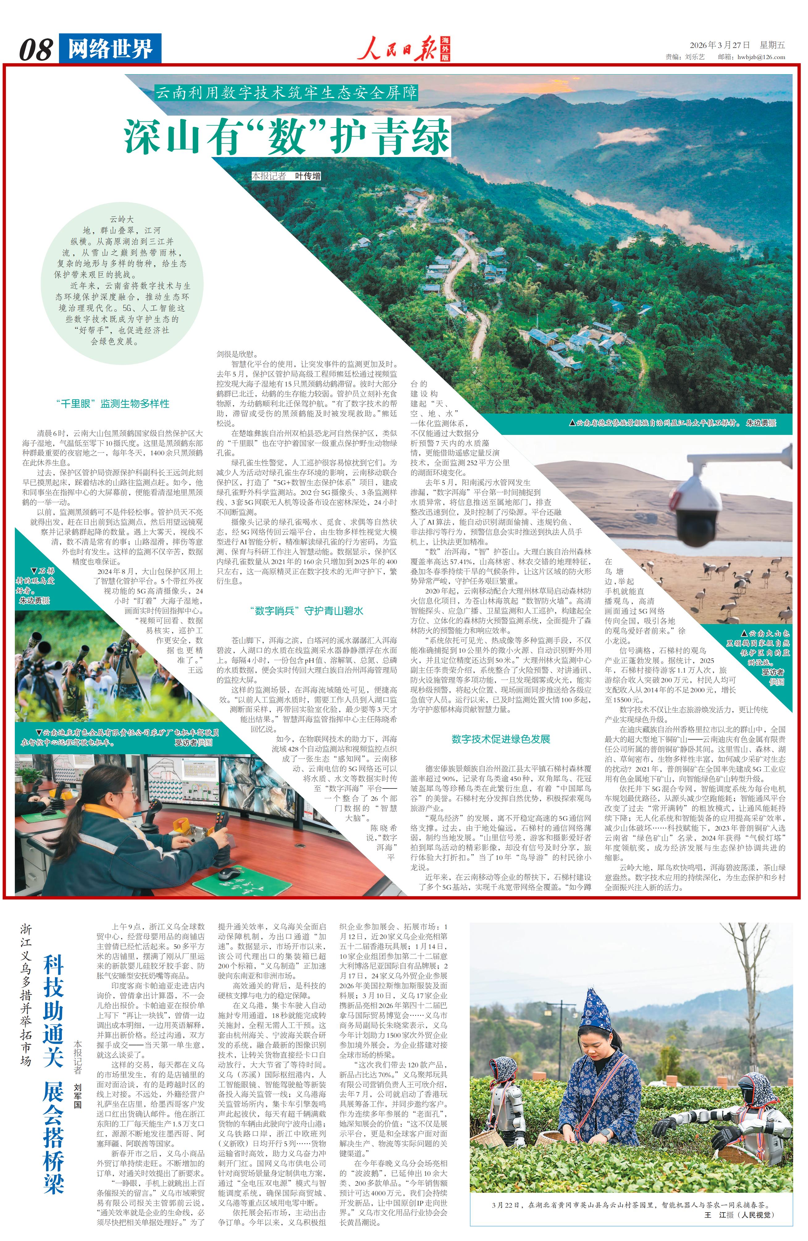近年来,云南省将数字技术与生态环境保护深度融合,推动生态环境治理现代化。5G、人工智能这些数字技术既成为守护生态的“好帮手”,也促进经济社会绿色发展。