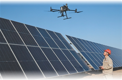 孙安使用无人机对光伏组件进行巡检。本报记者 阿尔达克摄