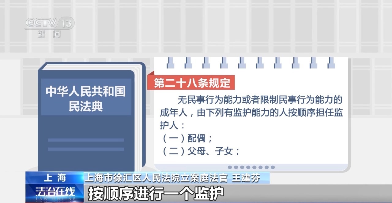 上海市徐汇区人民法院立案庭法官 王建芬:根据法律规定,无民事行为能力和限制民事行为能力的成年人,他的监护人是有监护资格的人,按顺序进行监护。