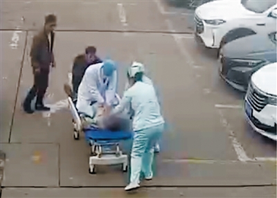 医护人员在抢救李成。视频截图