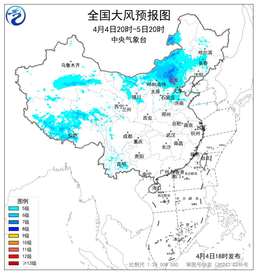 中央气象台继续发布了大风预警,预计今天夜间到明天,内蒙古大部、山西北部、京津冀北部和南部、山东北部、新疆南部、青海南部、西藏中西部、川西高原北部等地部分地区有5~7级风,阵风7~9级;其中,内蒙古中部局地阵风10级以上。